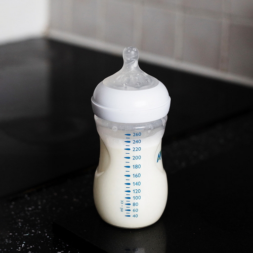 Dopo aver raggiunto la temperatura desiderata, è sufficiente aggiungere la formula al flacone.